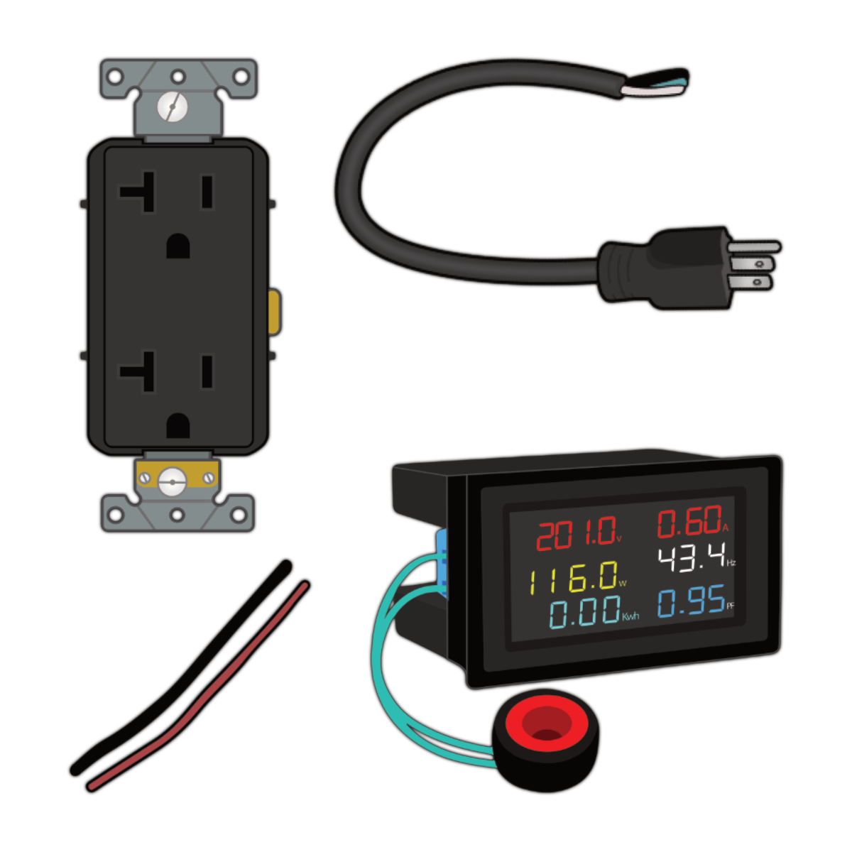 Depending on The Meter Box selected, we offer two component kits: our "Commercial" 250V L6-30r or a "Home" 125V 5-20r. Each kit will include the required DROK Multimeter, Outlet, Cord w/ ROJ, and jumper cables needed to fully complete your Meter Box build.